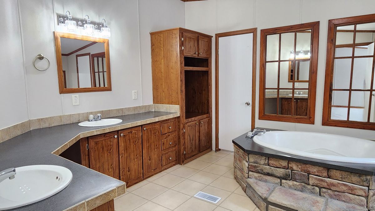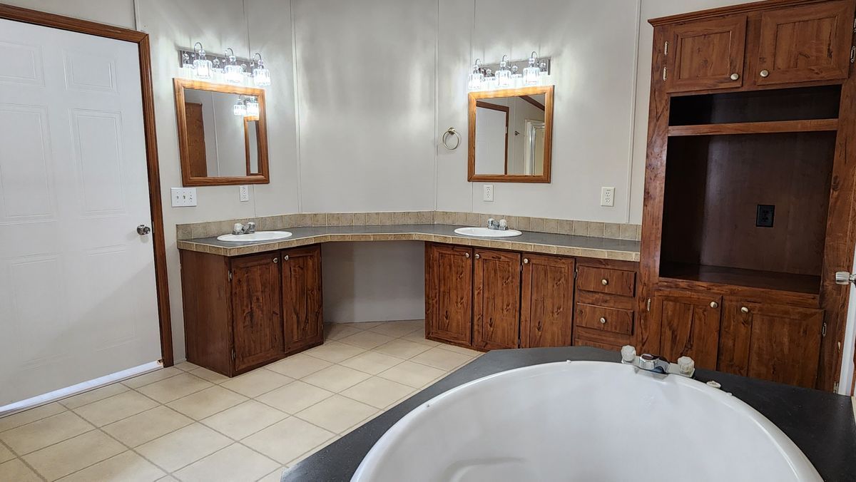 The master bedroom is very spacious with plenty of room for your king sized bed and dressers. The master bathroom has a walk-in shower, larger soaker tub, over sized vanity with double sinks and a vanity area. The master closet is HUGE with a his and hers side that walks all the way through!