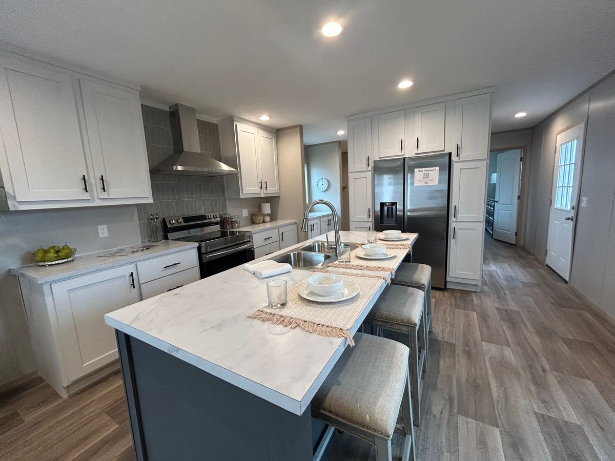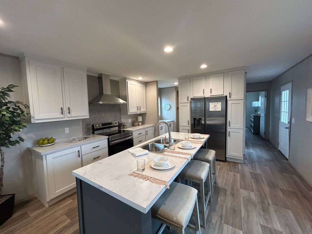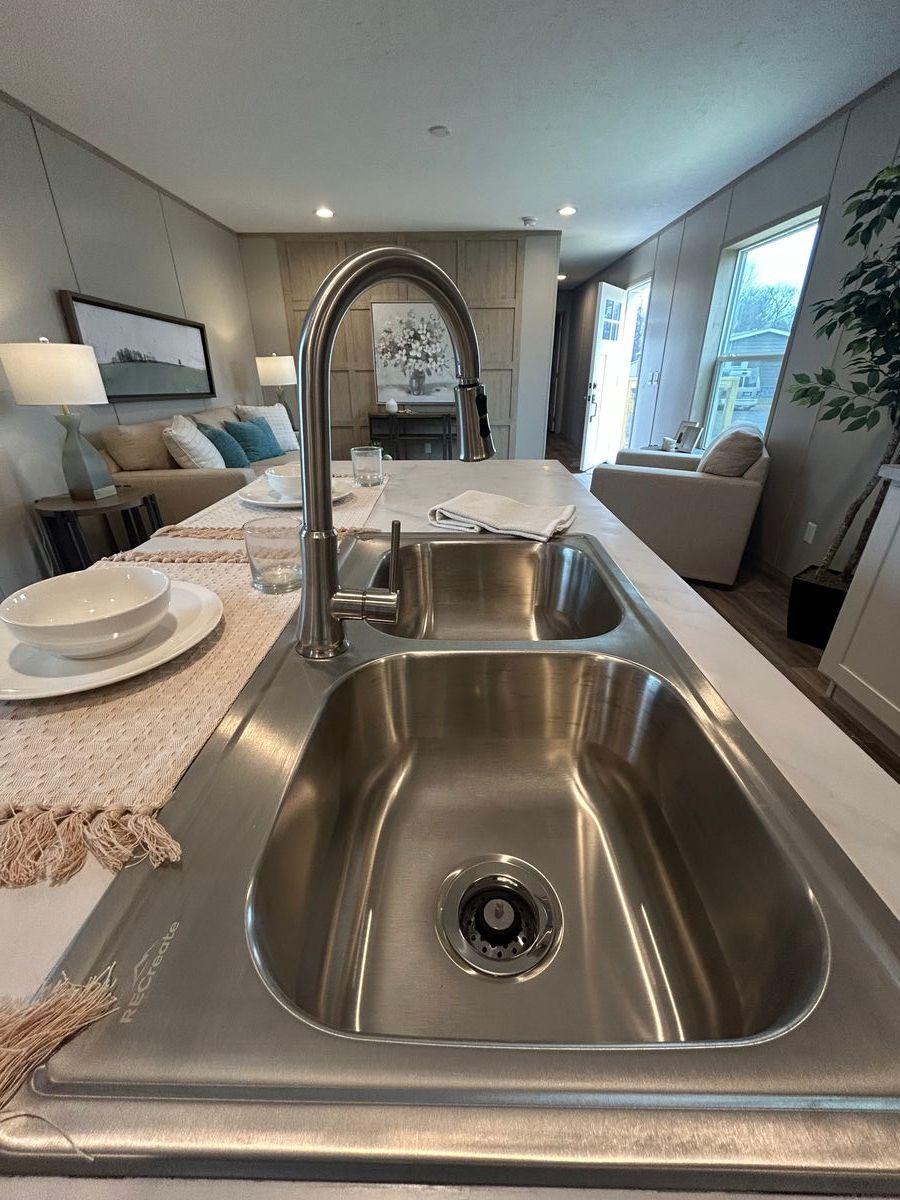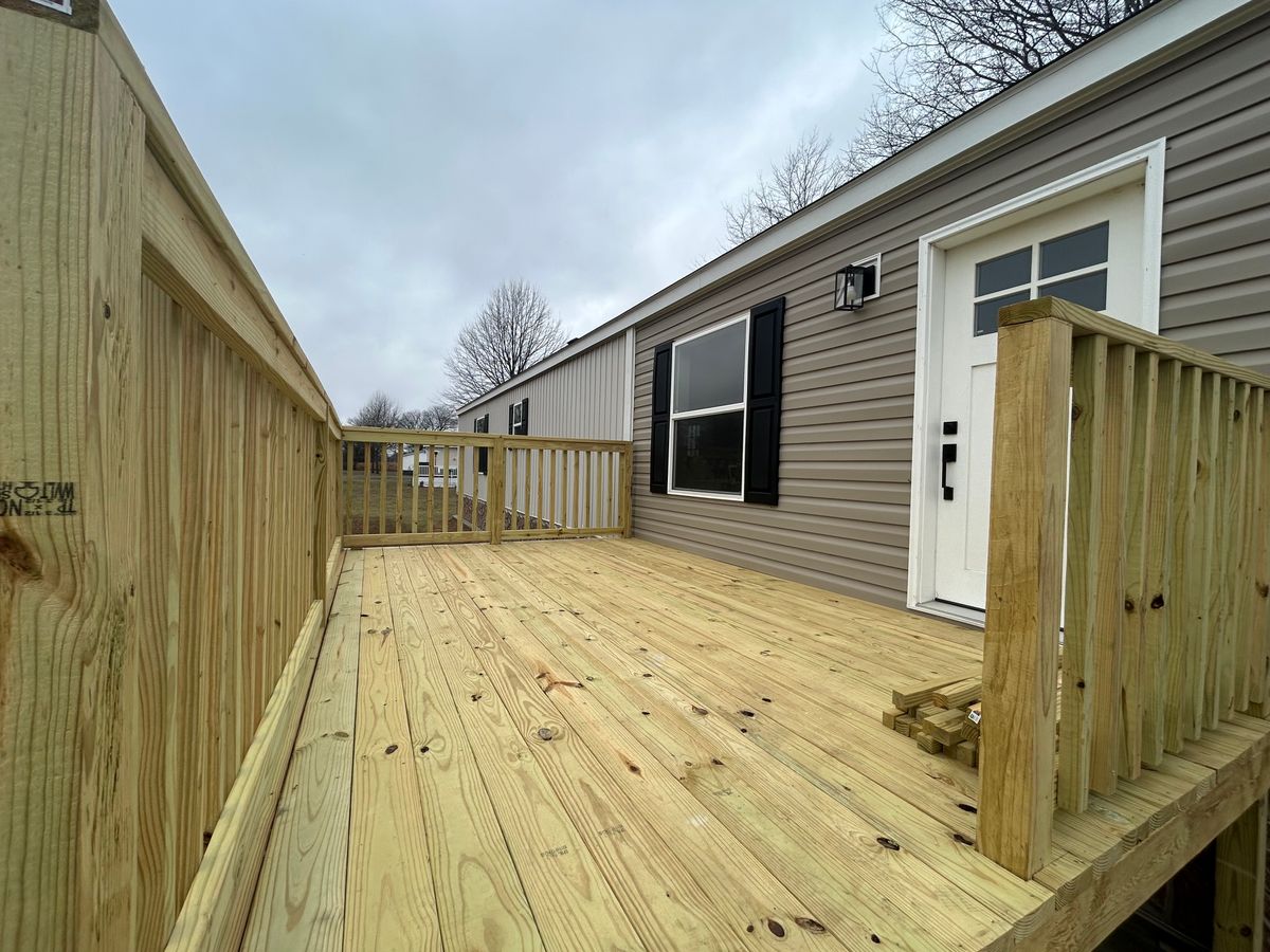 Setup with rock style skirting, water, sewer, electric hooked up, and HVAC installed!