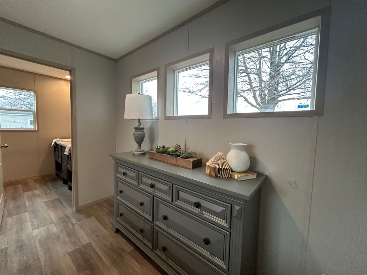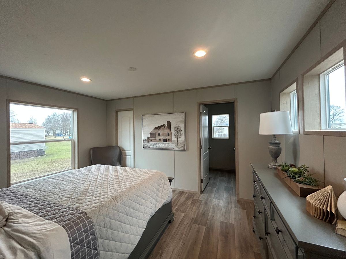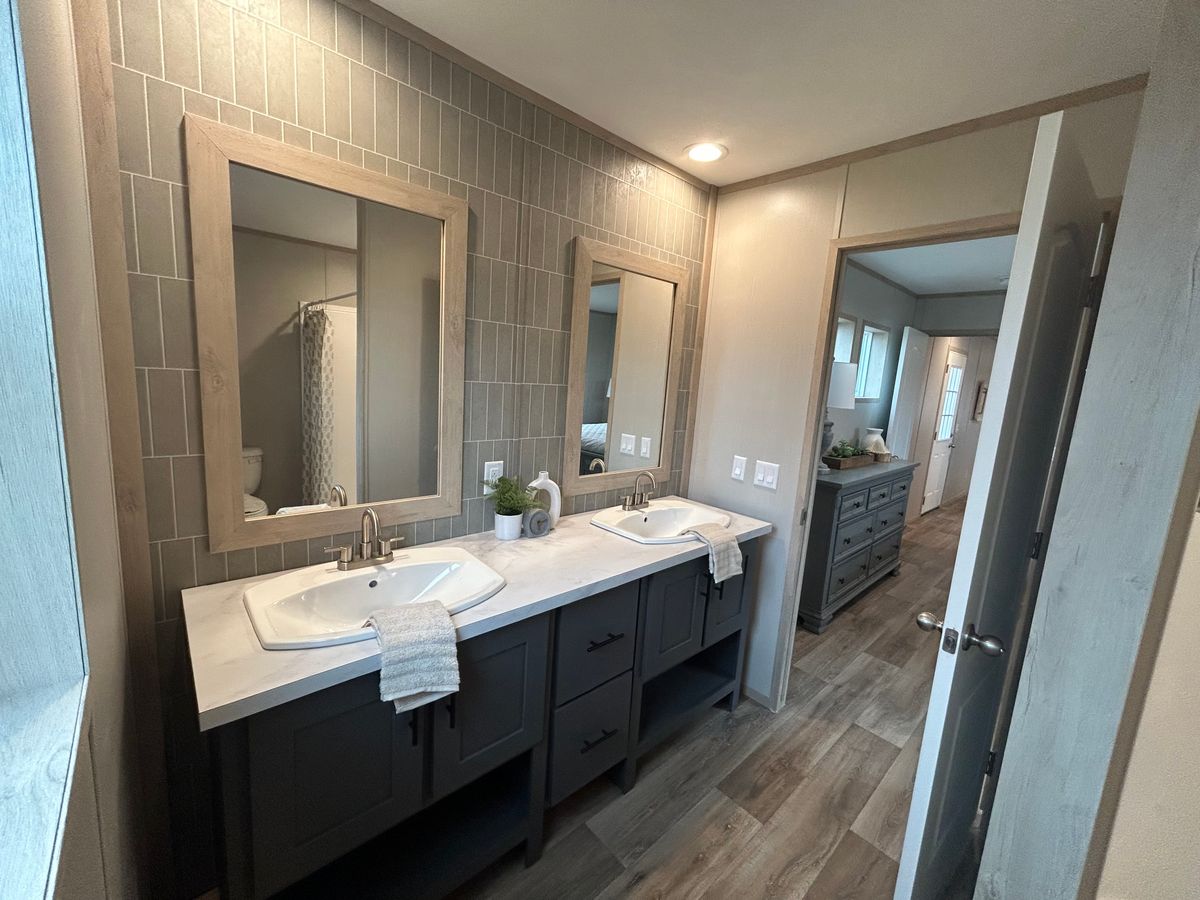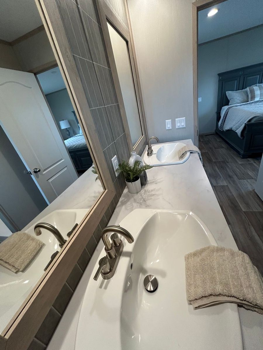 Setup with rock style skirting, water, sewer, electric hooked up, and HVAC installed!
